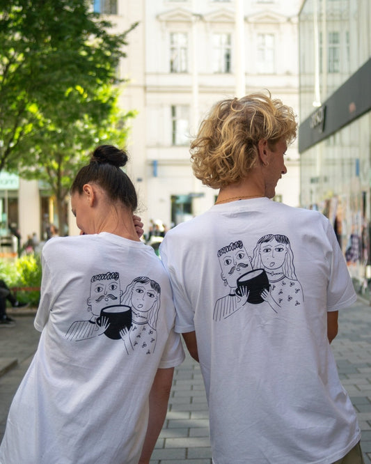 "kaffemik" T-Shirt mit gesticktem Schriftzug